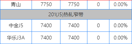 今日201冷軋?jiān)玳g多持平,不過(guò)隨著304的各種波動(dòng),市場(chǎng)報(bào)價(jià)都相對(duì)積極,而一些規(guī)格也都重現(xiàn)江湖,市場(chǎng)價(jià)格相對(duì)混亂。